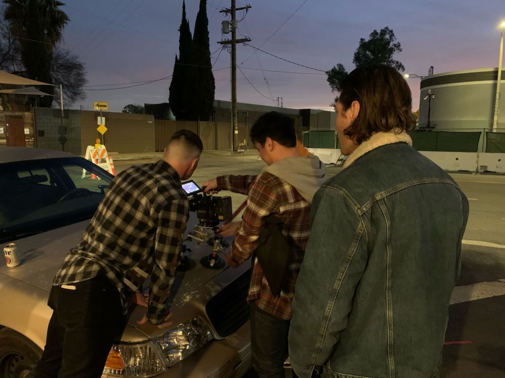 The shoot itself came together in what was 48 or 72 hours. I called a DP & Camera Op I have been friends with and worked with for years, they were both down to come out and play. One of them had a route that would look great and we could drive relatively unbothered, we had no permits and some lights and other camera gear we could use. I decided to use my old stunt cop car that I had given to Actor Jett Jansen Fernandez, who plays Danny. We felt that was a fun look, the criminals were driving an old detective car as cover, then we brought on Brian Perez for sound who I had done a few events and promos with. We got the cast together in an AirBnB I was renting in LA along with Associate Producer Sari Sanchez, who by the way is a killer actress herself. We rehearsed one night for a few hours until the actors were off book and had breathed their own life into the characters, then I ran around for a few hours before the shoot and bought the last few props and wardrobe items we needed and we were as ready as we were going to be!