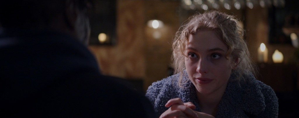 Treating Aidy like an adoring girlfriend clinging to her every word, she typifies the “manic pixie dream girl”: vapid, self-absorbed, entitled – and in this context, unwanted. Aidy can barely look at the crass intruder. When she finally snaps, we share her outrage with conviction.